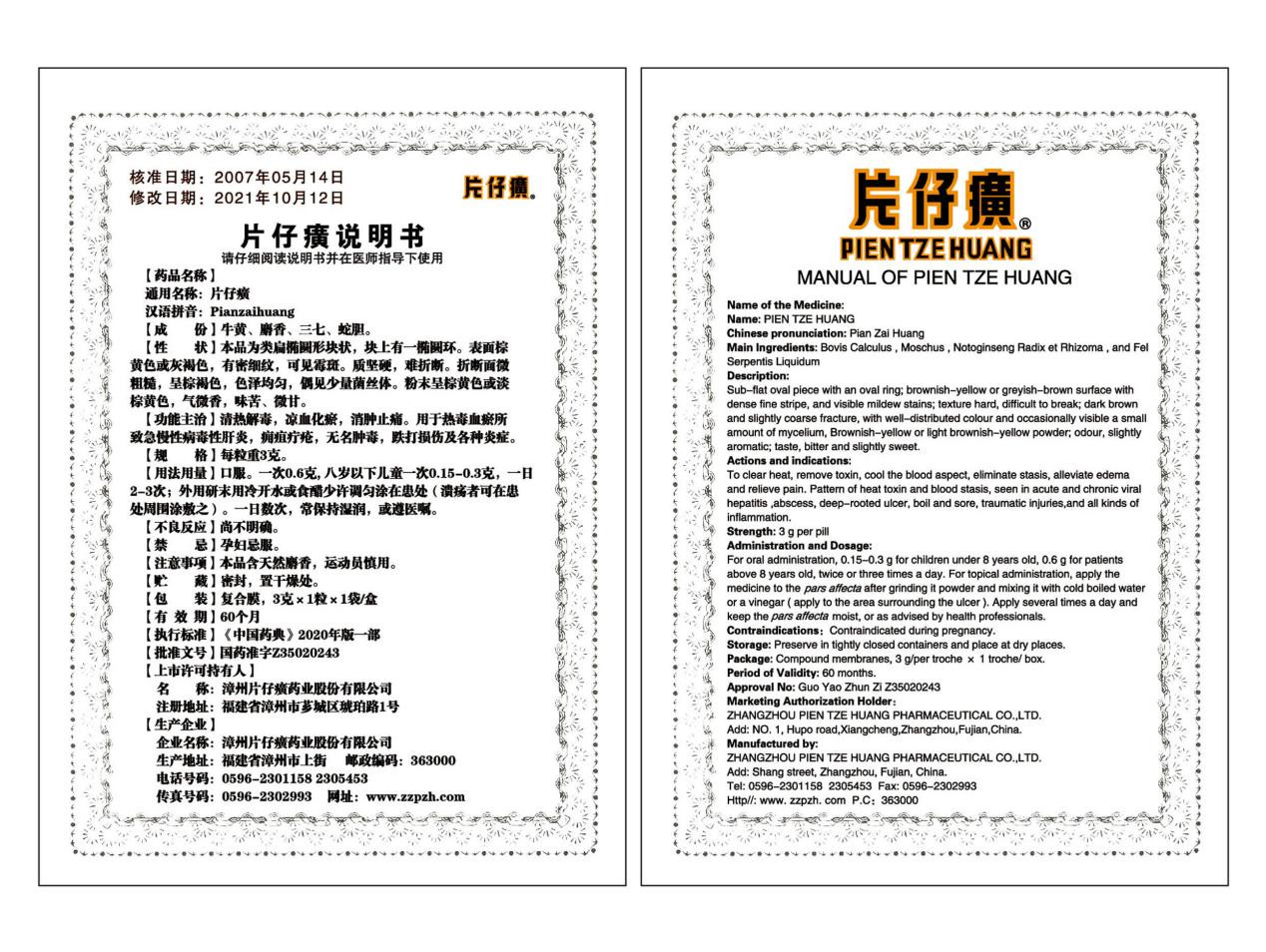 片仔癀(OTC)說明書