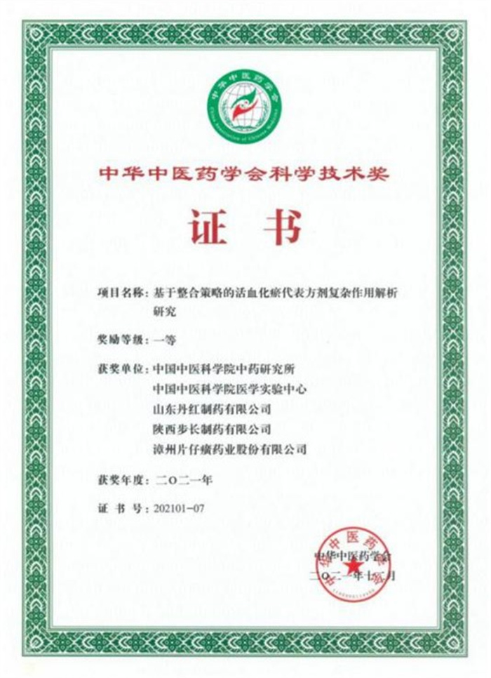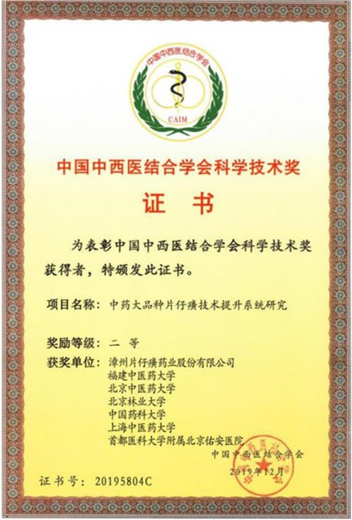 中國(guó)中西醫(yī)結(jié)合學(xué)會(huì)科學(xué)技術(shù)獎(jiǎng)二等獎(jiǎng) (中藥大品種)
