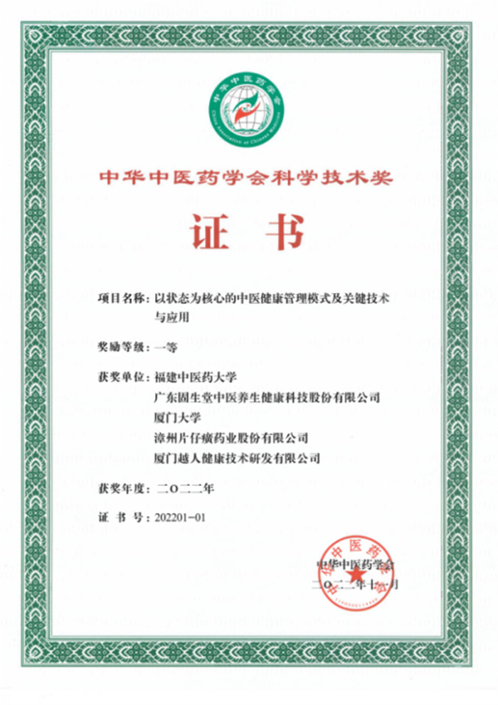 中華中醫(yī)藥學(xué)會(huì)科學(xué)技術(shù)獎(jiǎng)一等獎(jiǎng)(關(guān)鍵技術(shù))