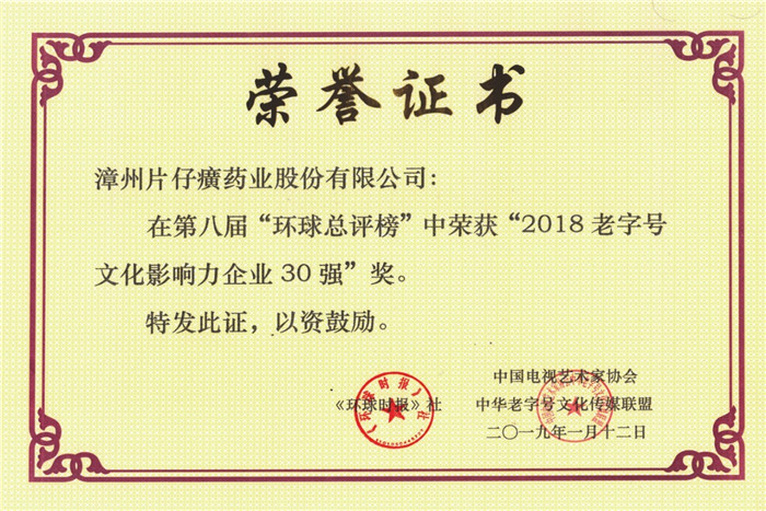 2018老字號文化影響力企業(yè)30強