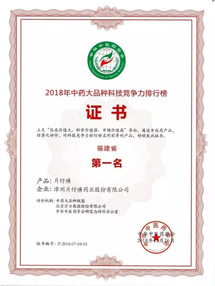 片仔癀榮譽