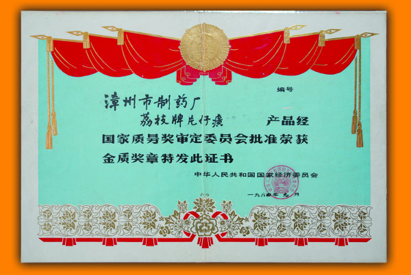 國家質(zhì)量金質(zhì)獎證書(1984)