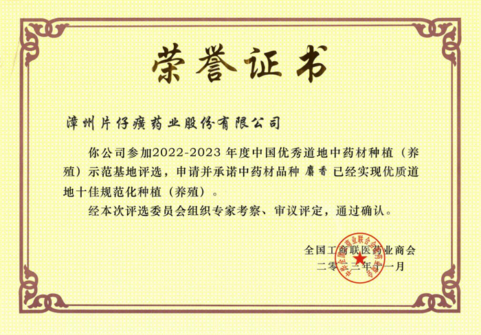 片仔癀藥業(yè)麝香基地獲評優(yōu)質(zhì)道地中藥材十佳規(guī)范話種植(養(yǎng)殖)示范基地榮譽