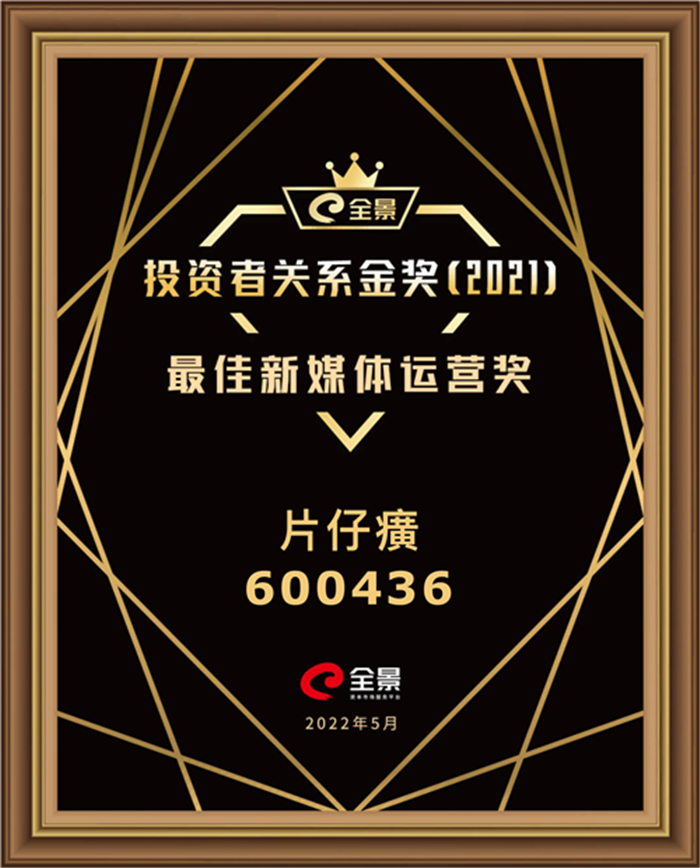片仔癀榮獲肝膽類“2020—2021年度中國藥店店員推薦率最高品牌”